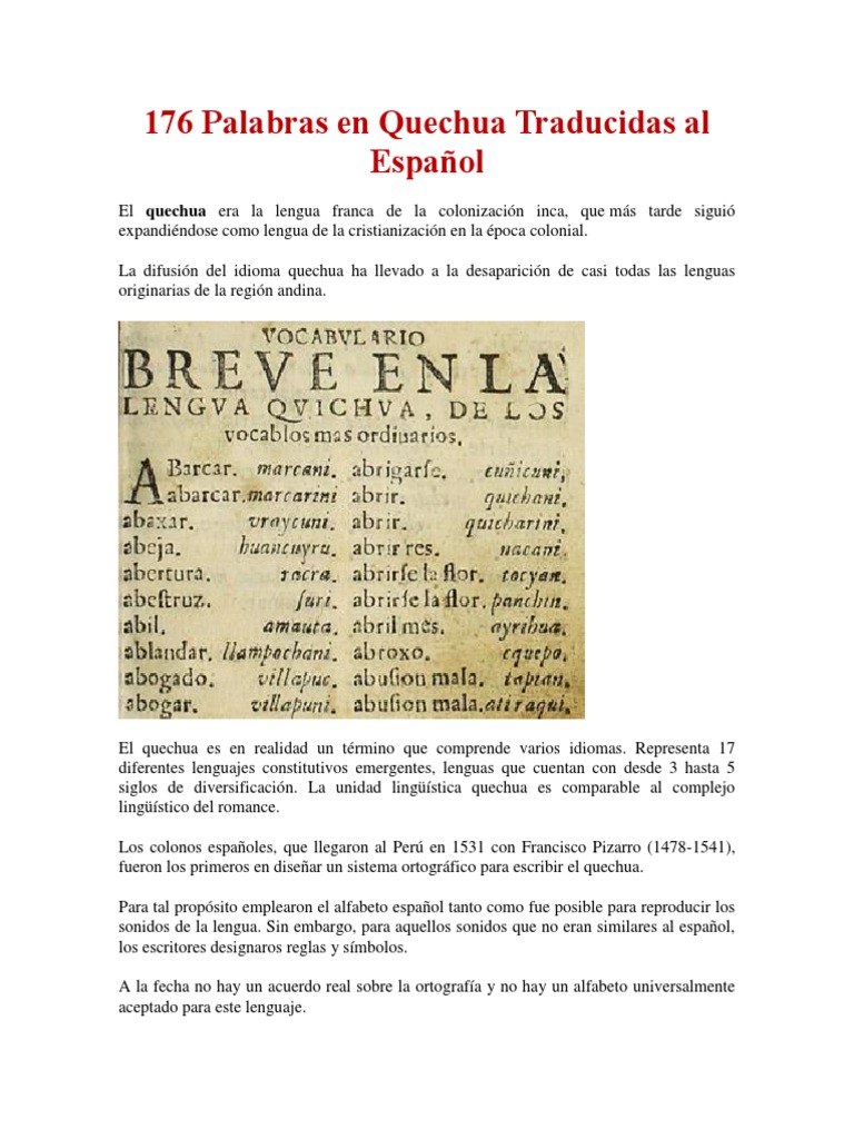 170 Palabras En Quechua Linguistica Semiotica